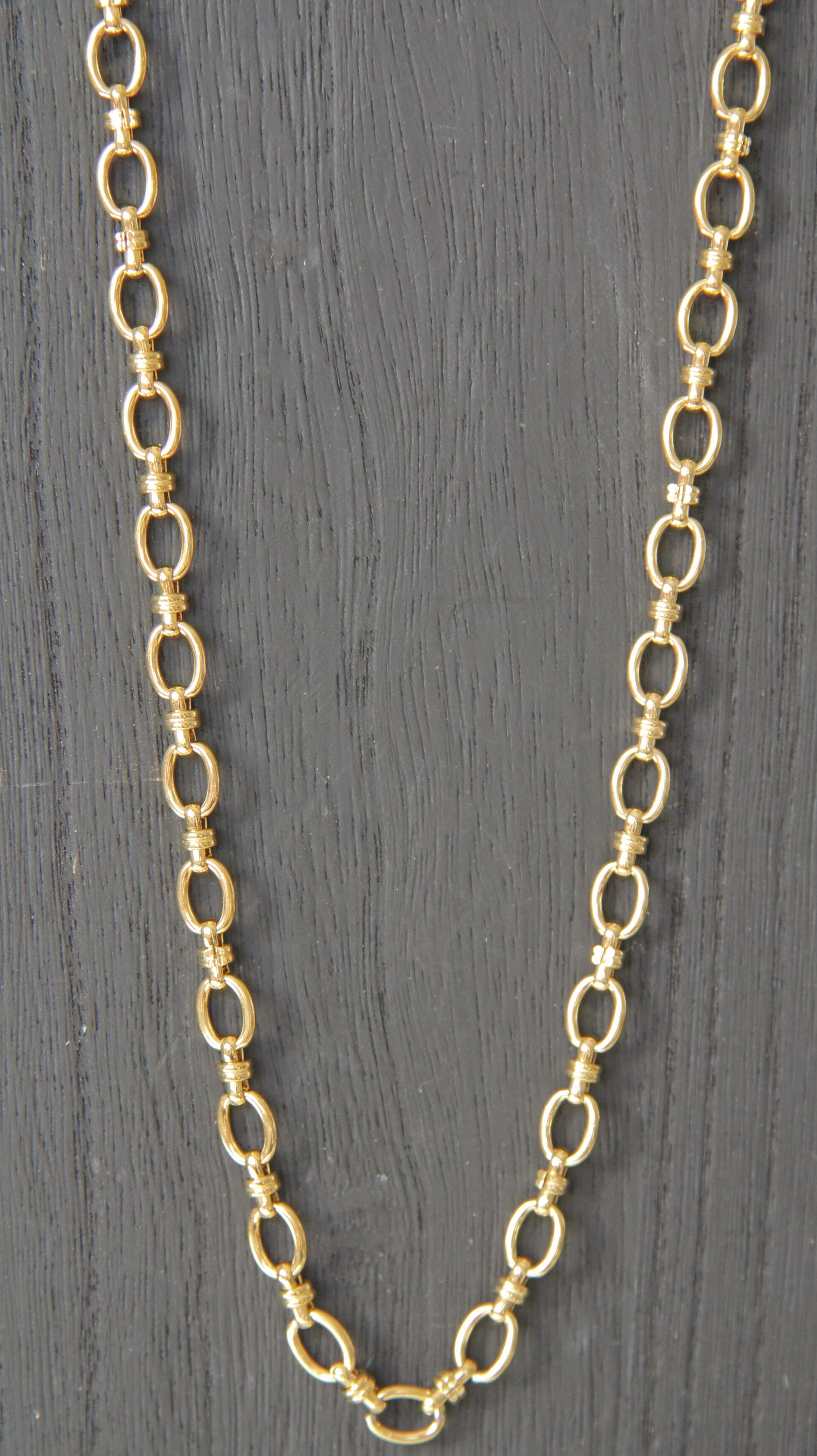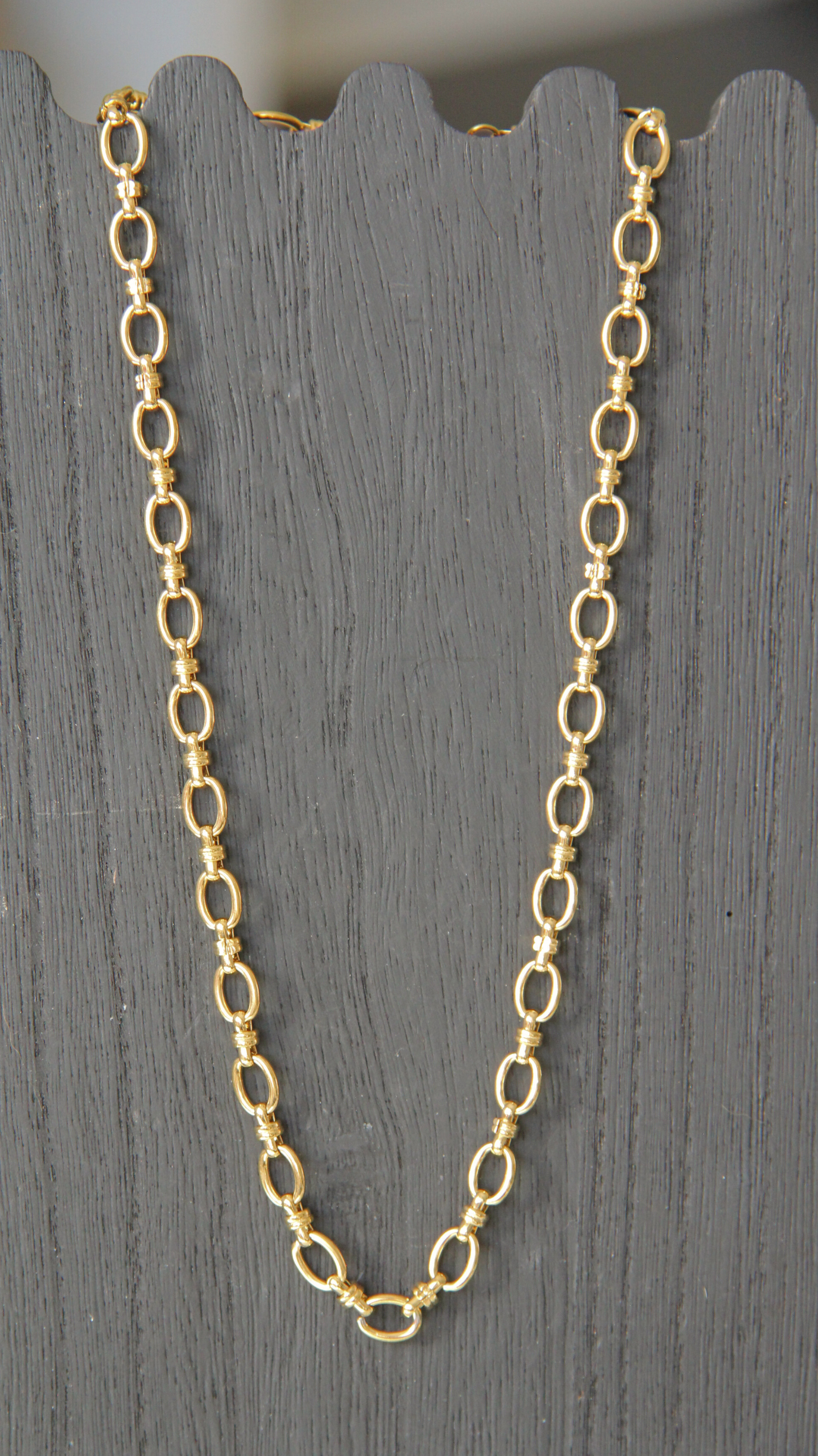 16". (Other necklace lengths available upon request. E-mail help@feelshittylookpretty.com). 18k gold PVD plated stainless steel. Water and tarnish proof.