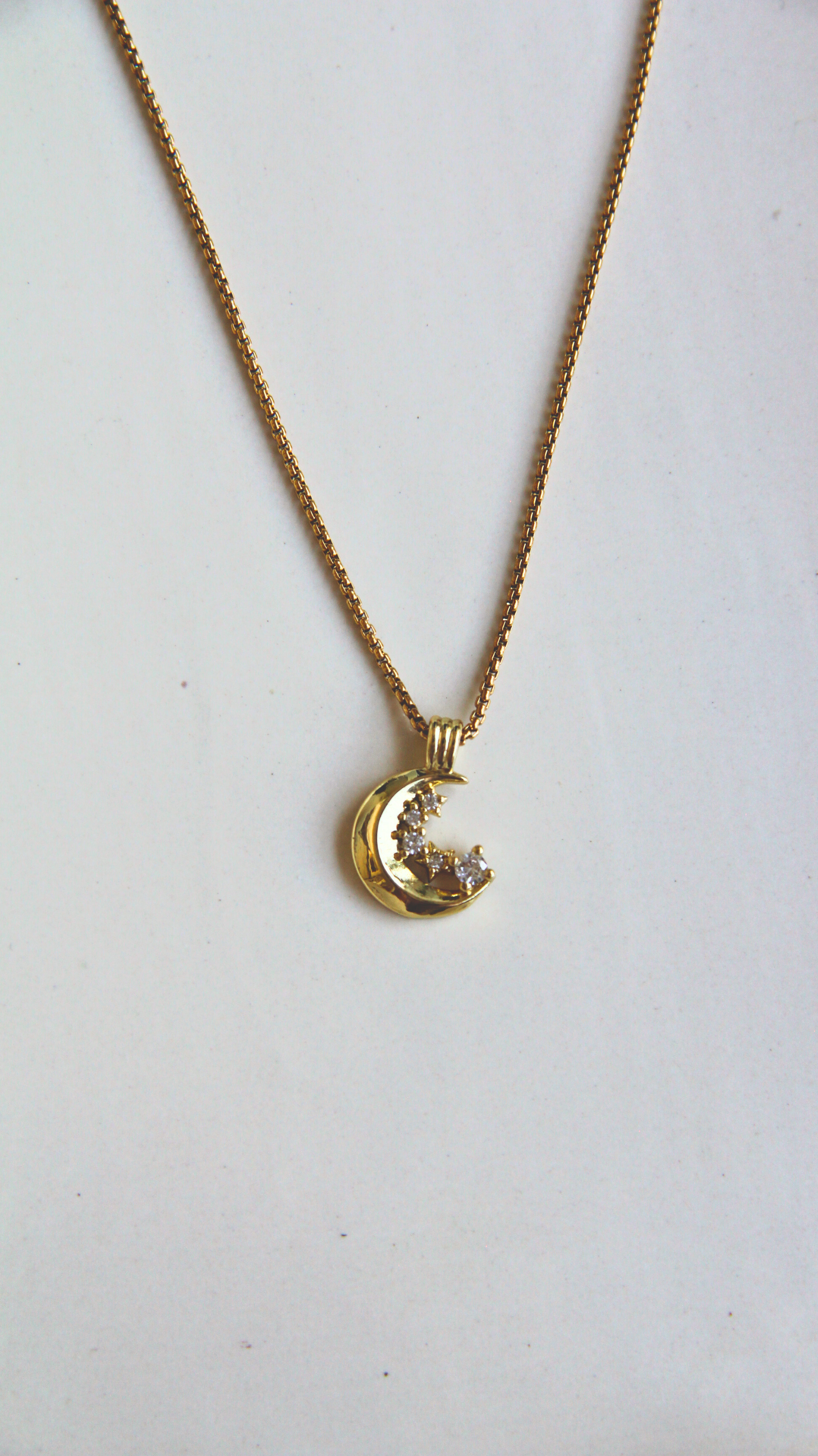 The Candace Necklace is a unique piece of jewelry featuring a crescent moon and a spattering of stars on an elegant pendant. The pendant slides freely on an 18k gold pvd plated venetian box chain. Perfect for adding a subtle touch of sparkle to any outfit, the Candace Necklace will be a constant reminder to keep reaching for the sky.