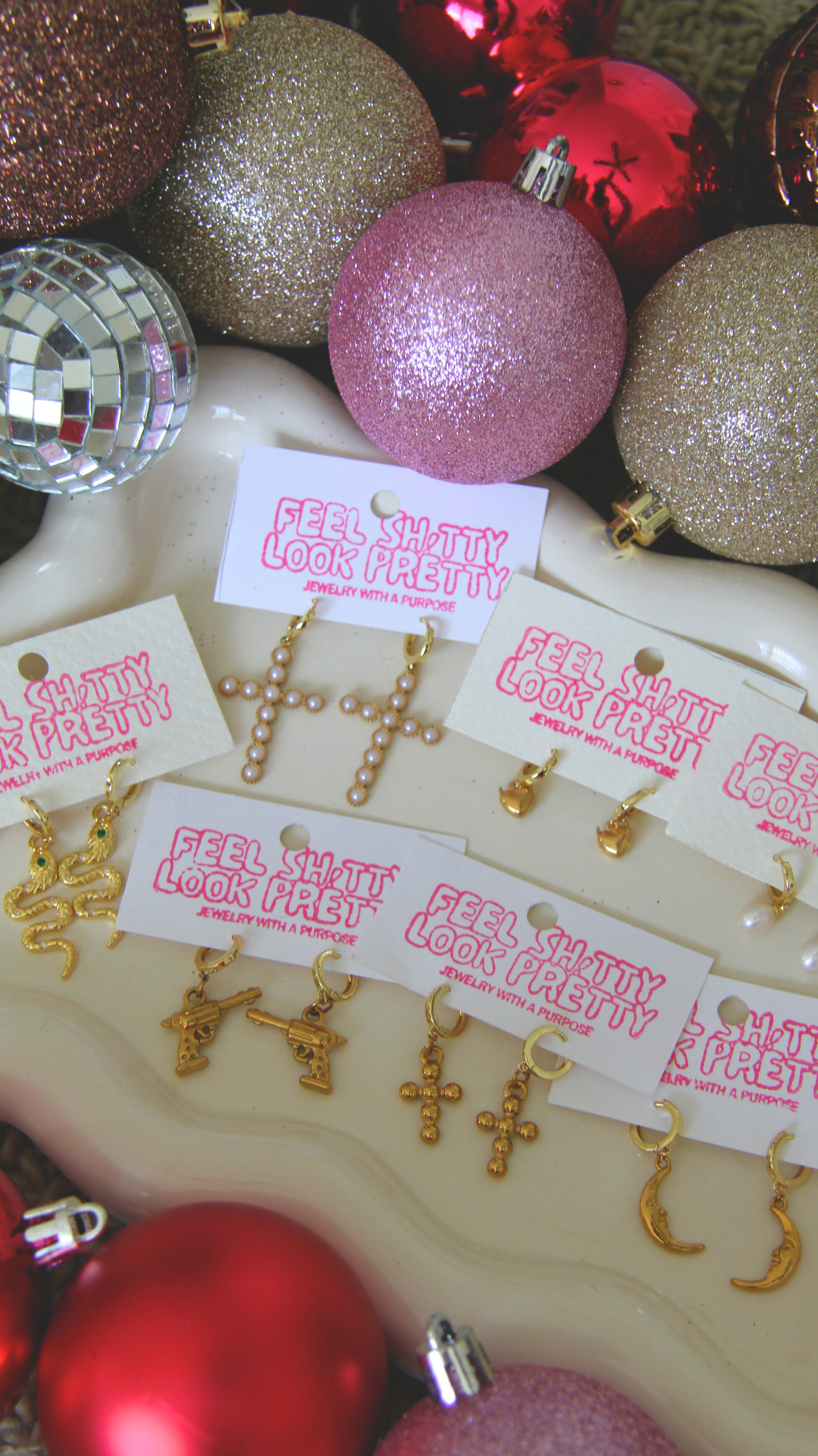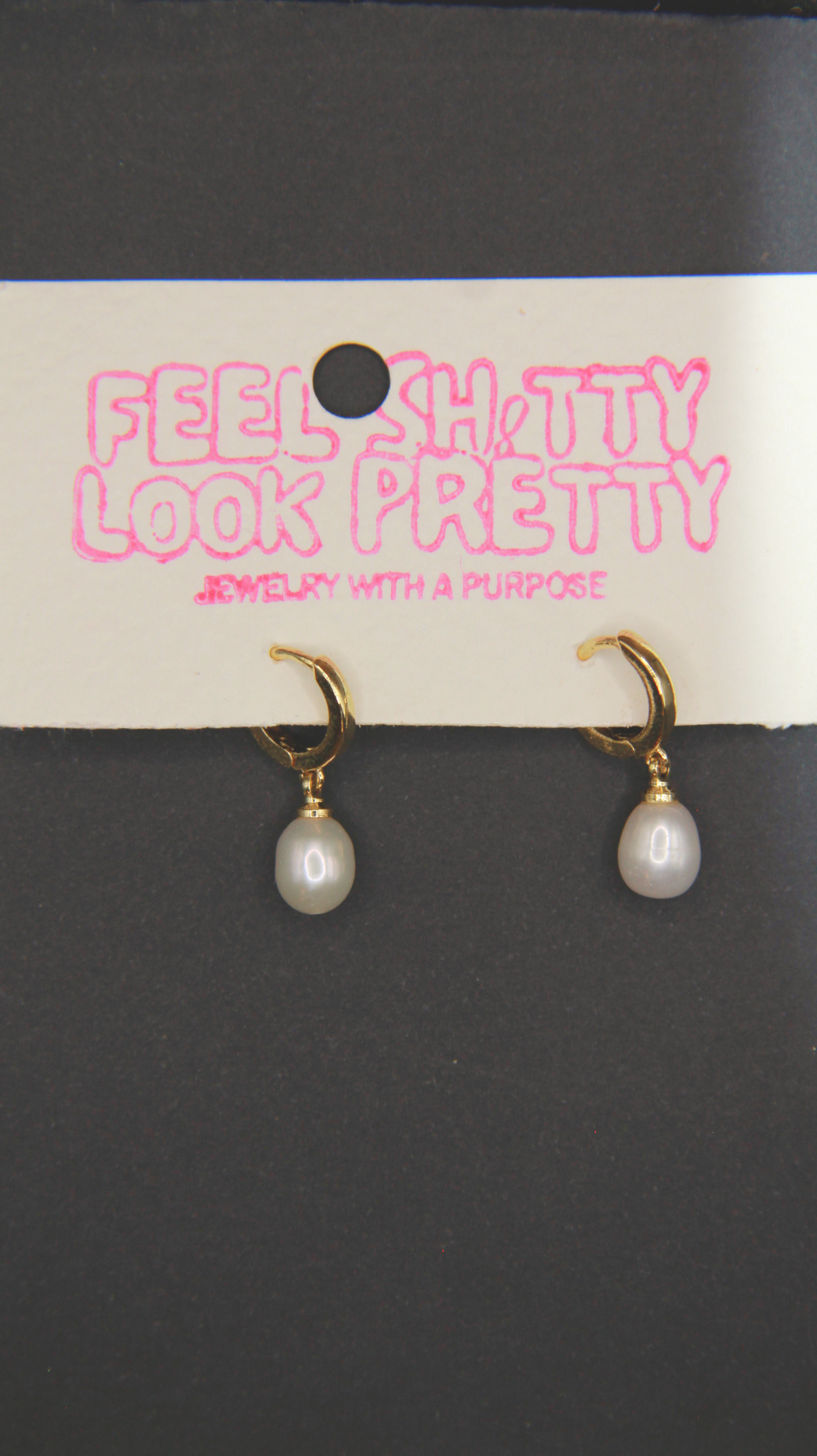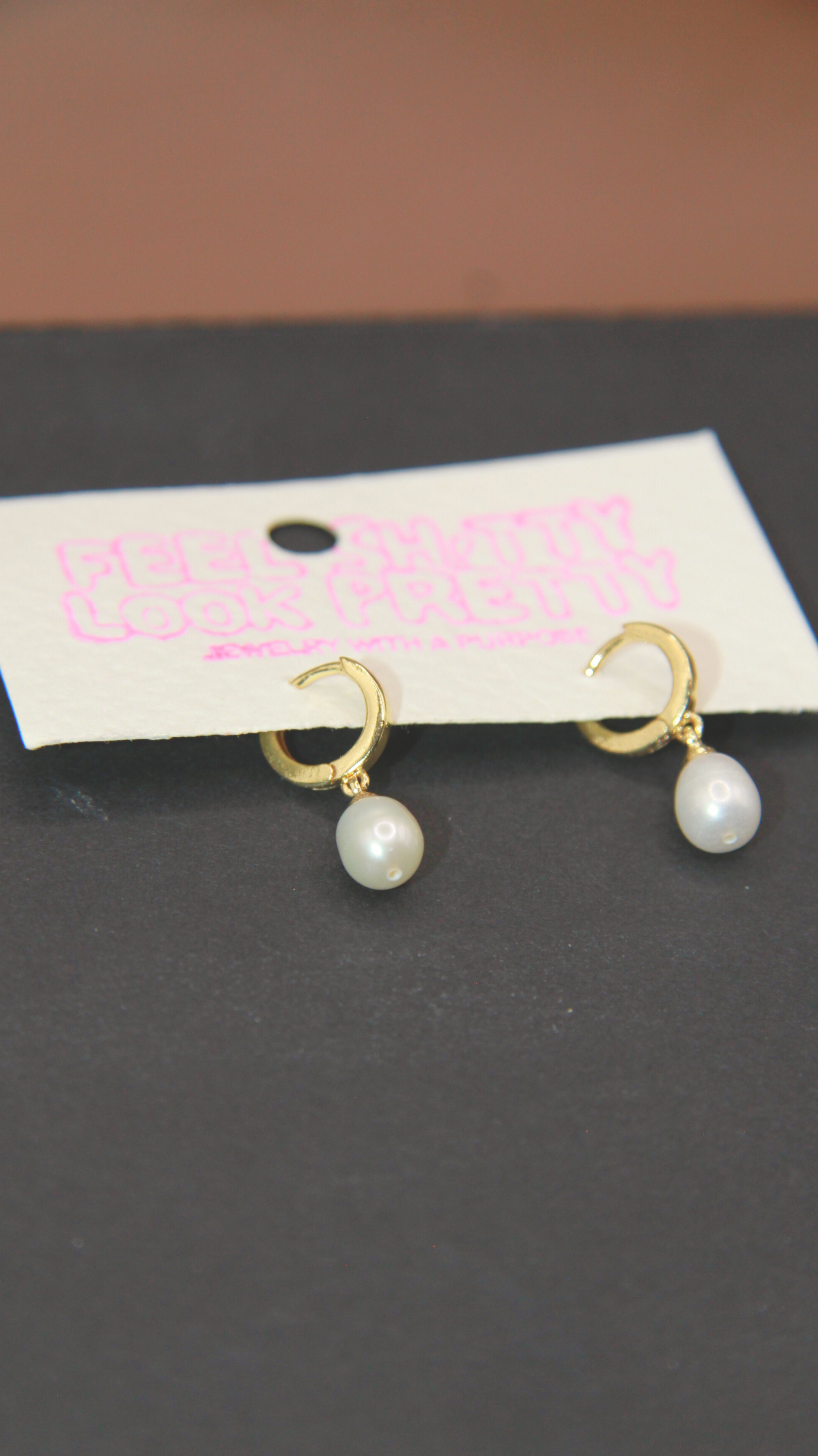Genuine pearls with 18k gold PVD plated stainless steel gold huggies. Water and tarnish proof!