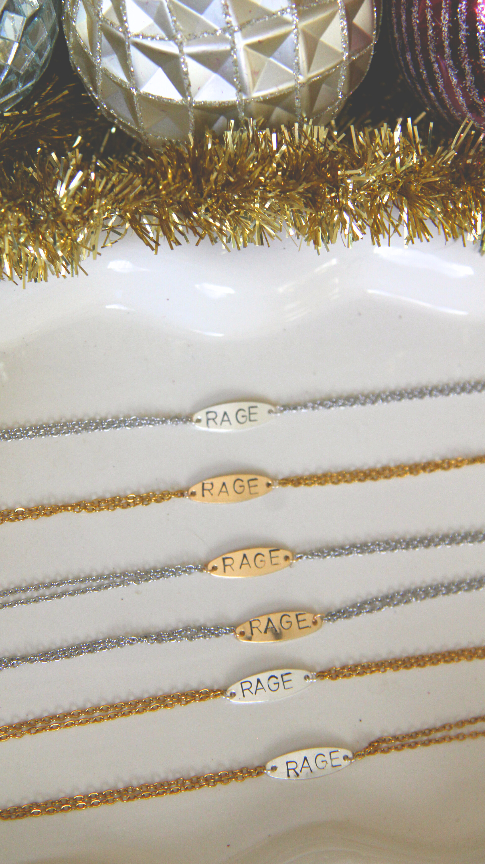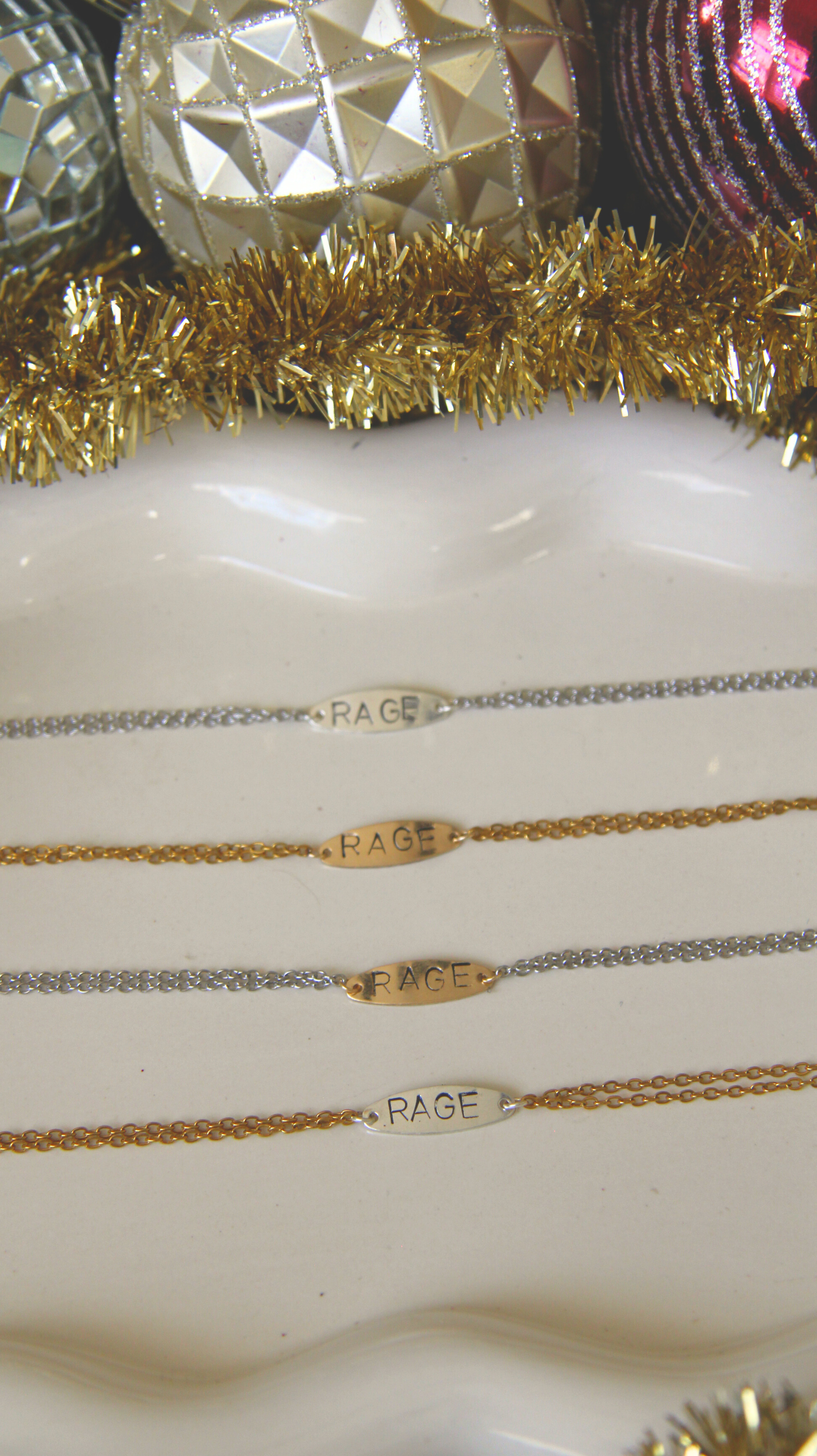 Choose from gold on silver, silver on gold, gold on gold, or silver on silver! The nameplates are sterling silver or 14k gold filled. The chains are your choice of silver stainless steel or 18k gold PVD plated stainless steel cable chains. Each bracelet is 7" with a 1" extender. Smaller and larger sizes available upon request (e-mail help@feelshittylookpretty.com) Water and tarnish proof!